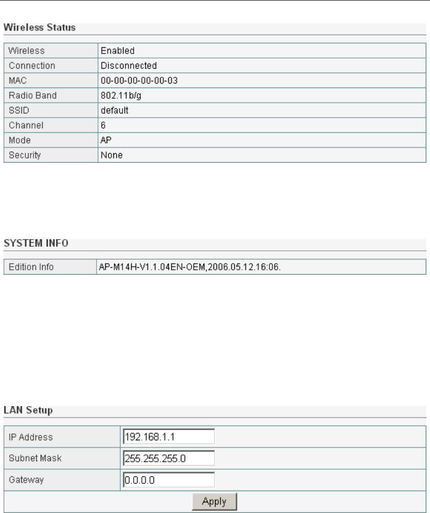 settings in the Wireless Access Point and plug your PC to the LAN port and