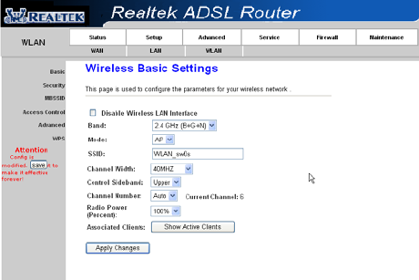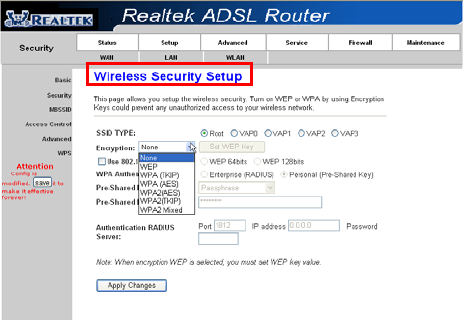 Step2:Go to Setup->WLAN->Security page, you can configure the