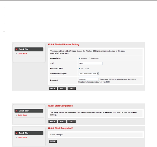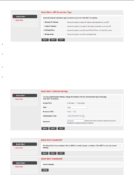 4) Left-click on “NEXT” and then “CLOSE” to save the current settings. Quick Start will be finished.