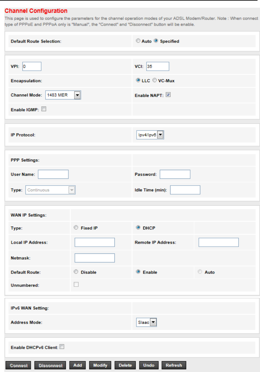 1)Dialuser:Connectiontype,Username,Password,ValueofVPI/VCI,Encapsulationmode.