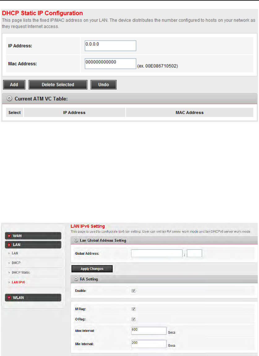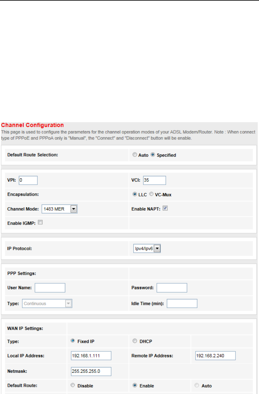 2)StaticIPuser:Connectionprotocol,WANIPAddress,SubnetMask,Gateway,ValueofVPI/VCI,