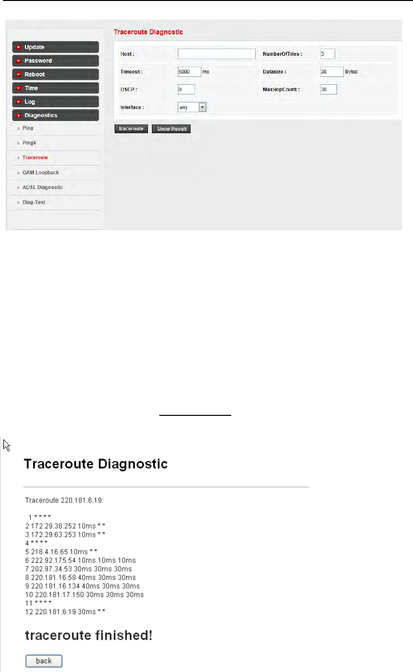 tostartthetracerouteprocess.Severaltimeslater,youcanseethetracerouteresult.