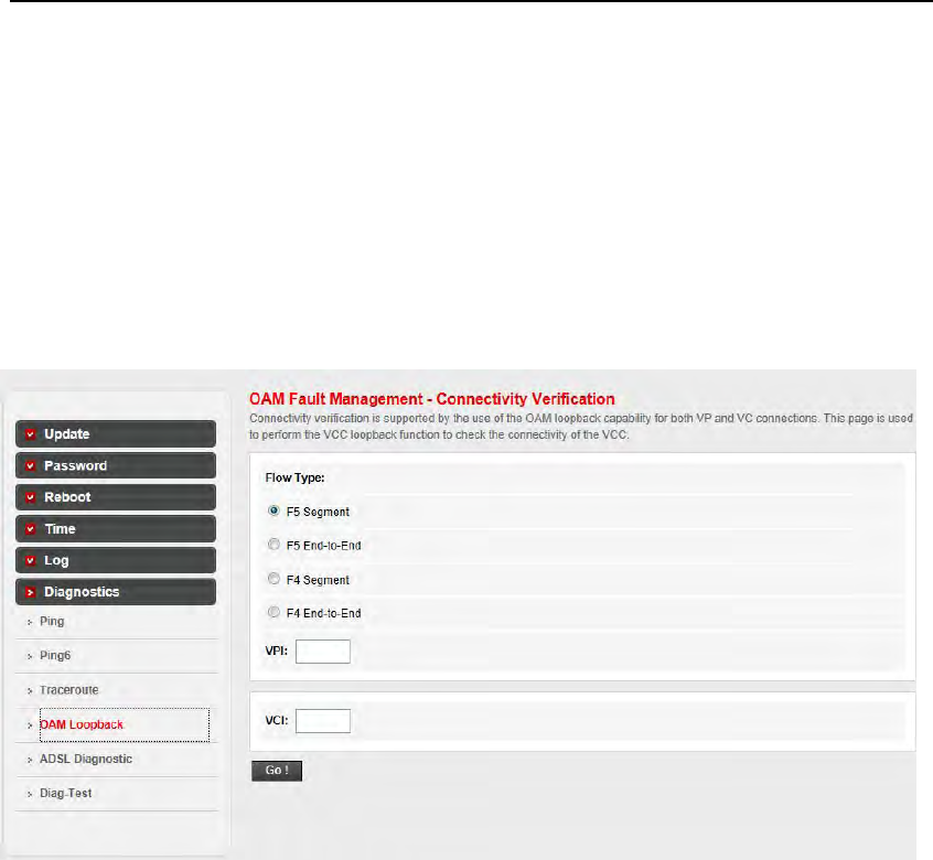 GotoMaintenance‐>Diagnostics‐>OAMLoopbackpage,youcanperformtheloopback