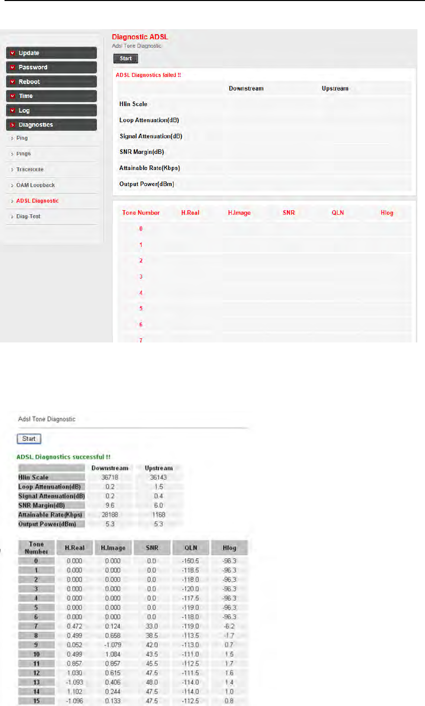 GotoMaintenance‐>Diagnostics‐>ADSLdiagnosticspage,youcanstarttheADSLtone
