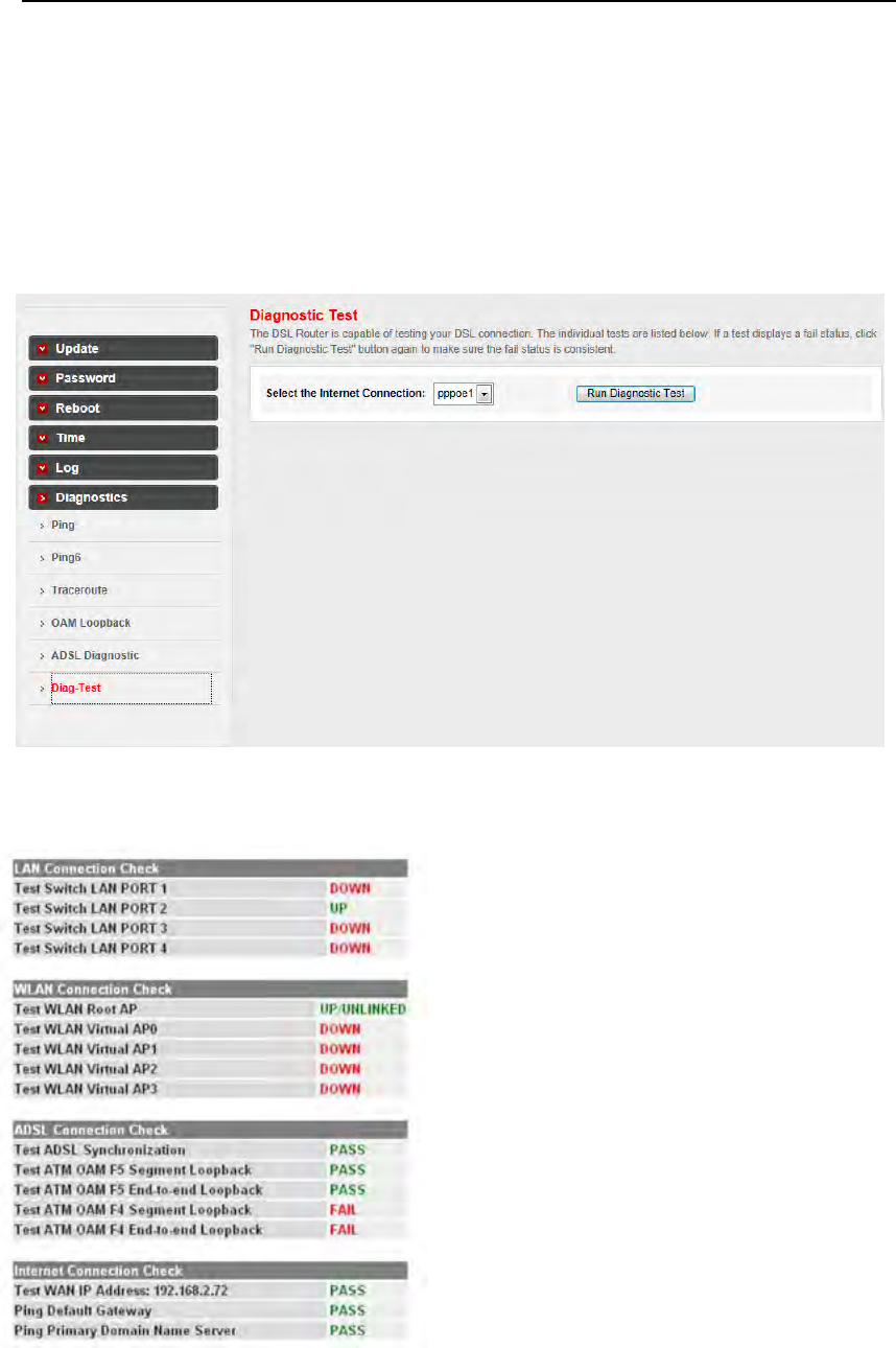 TheDiagnosticTestallowsyoutotestyourDSLconnectionofthephysicallayerandprotocol