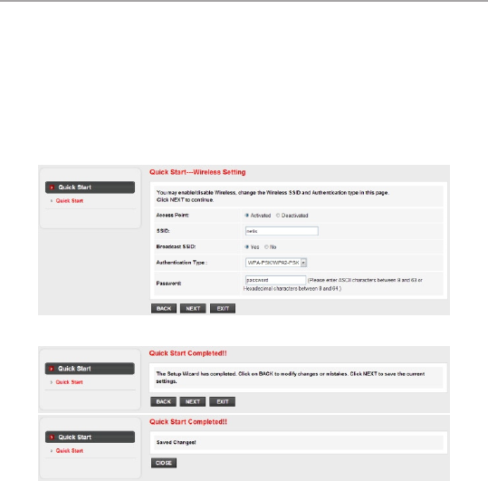 4) Left-click on “NEXT” and then “CLOSE” to save the current settings. Quick Start will be finished.