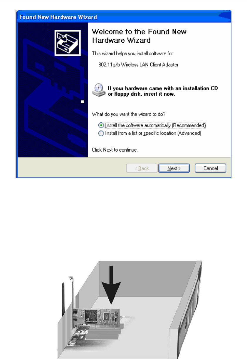 z Slide the PCI Adapter into the PCI slot. Make sure that all of its pins are touching the