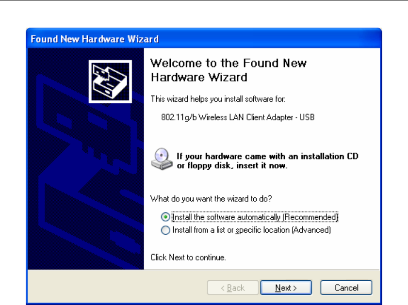z The Wireless Client Configuration Utility screen will appear automatically.