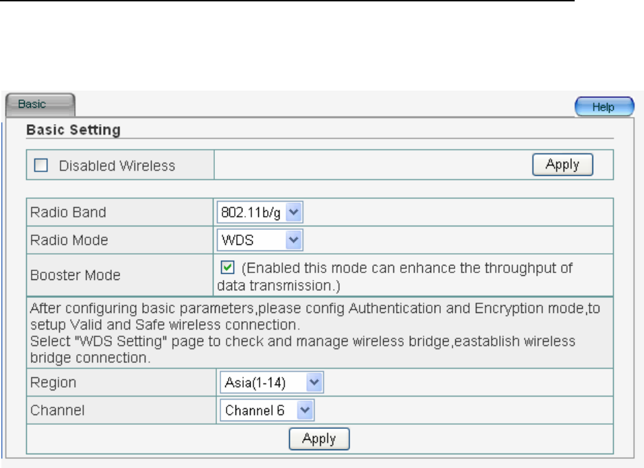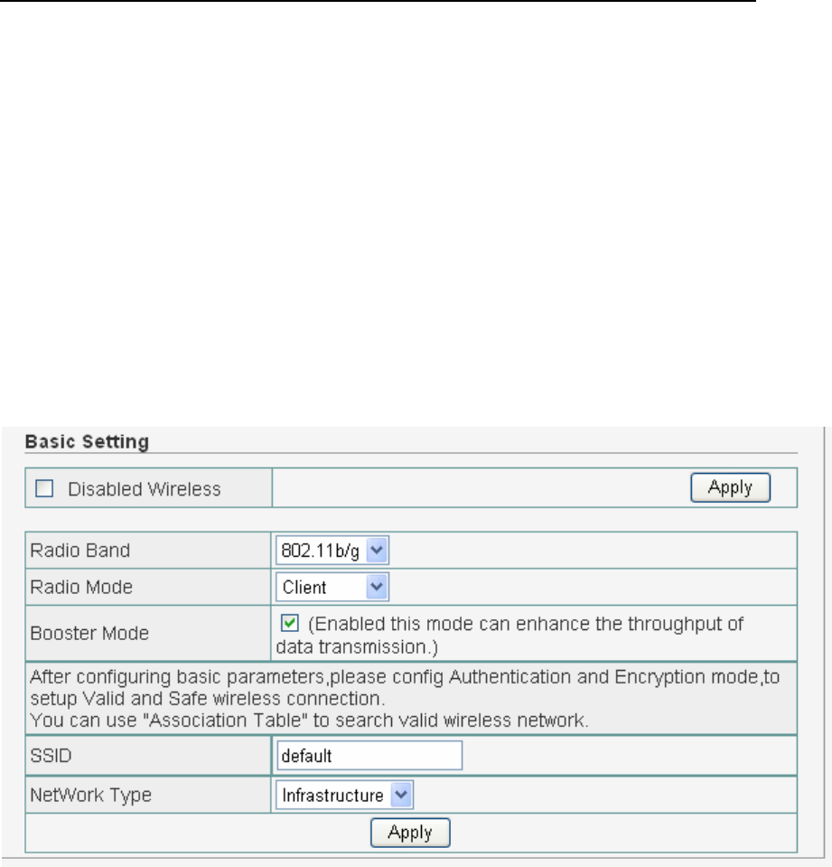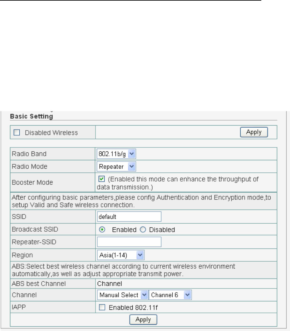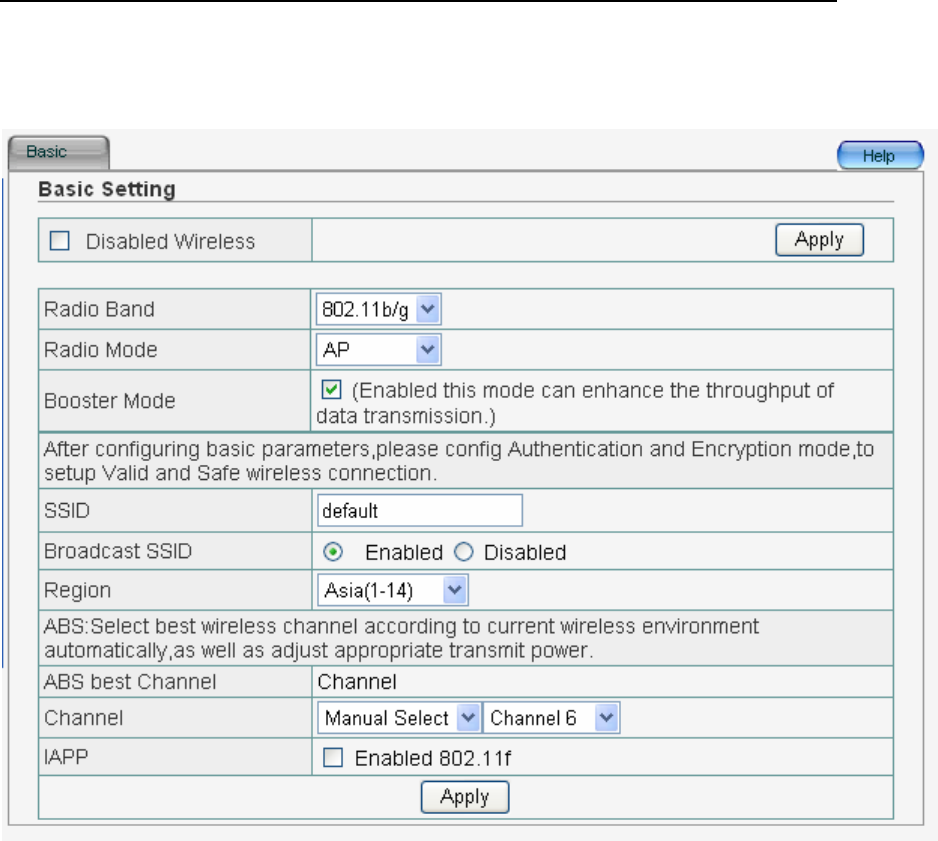 Wireless Basic Setting page, is not configured to use 802.11G Performance.