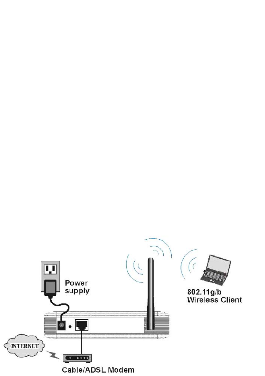 802.11g/b access point that allows you to build up a wireless LAN. With the