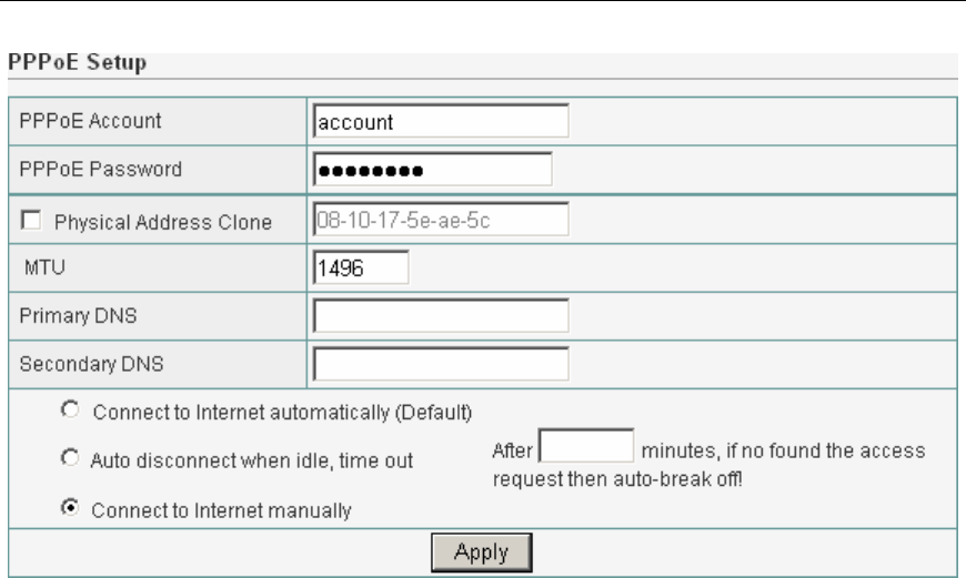 z Repeat the steps in WAN Setup Connect with Internet through DSL Modem.