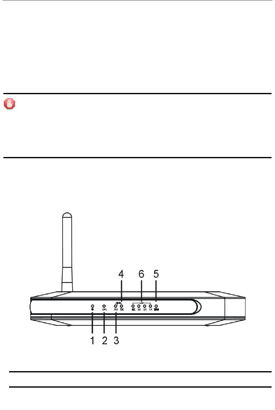 LEDs: Power, WLAN, LAN (1-4), WAN