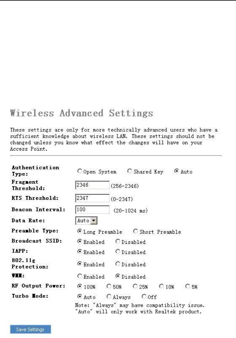 Wireless Basic Setting page, is not configured to use 802.11G Performance.