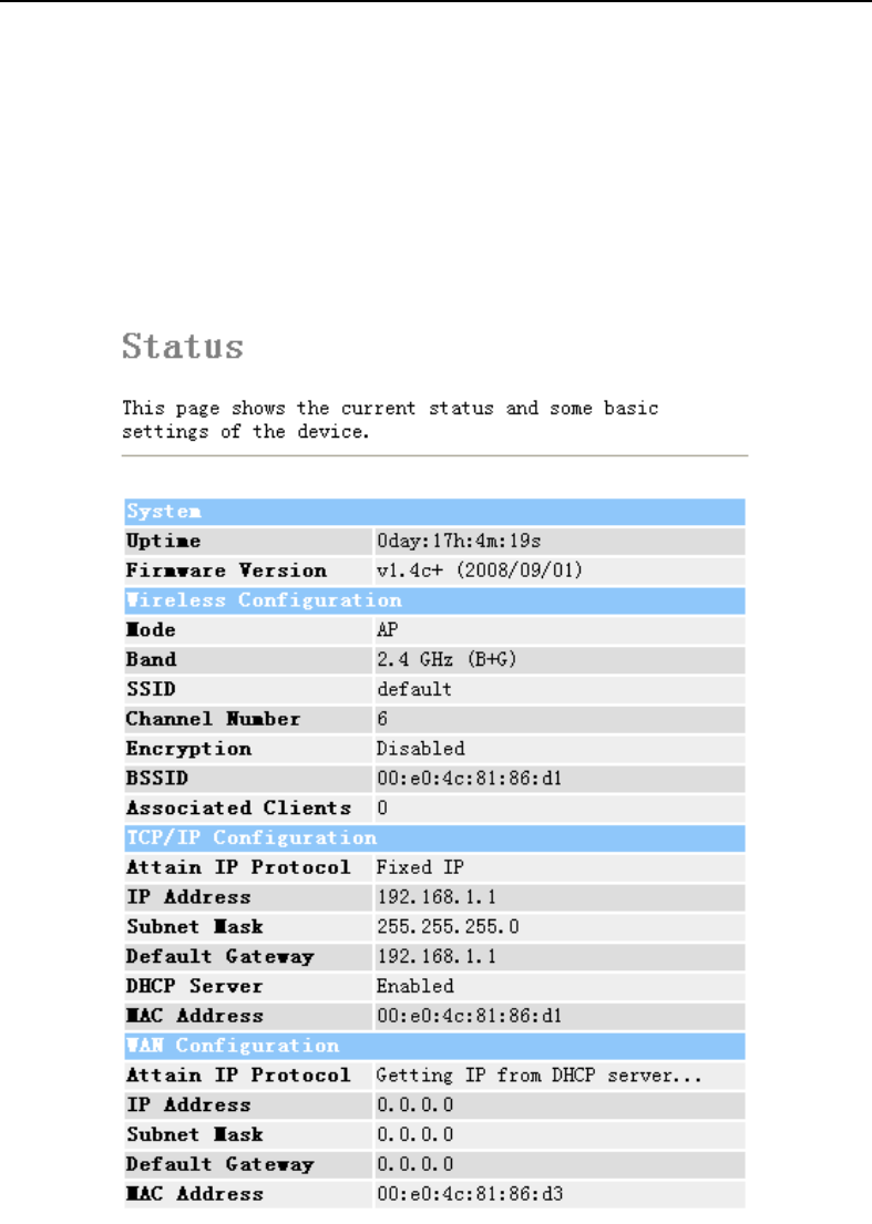 and check the status group to see if the router’ s WAN port has successfully obtained