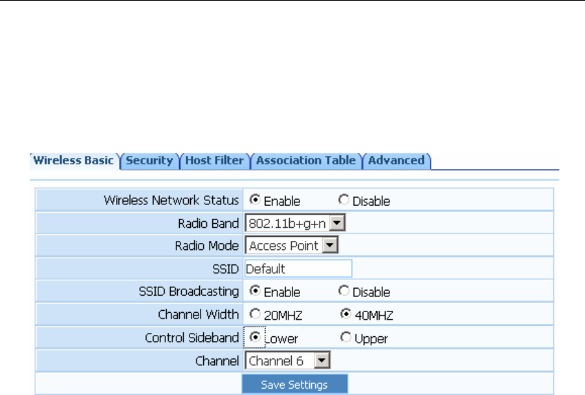 Wireless Basic Setting page, is not configured to use 802.11G Performance.