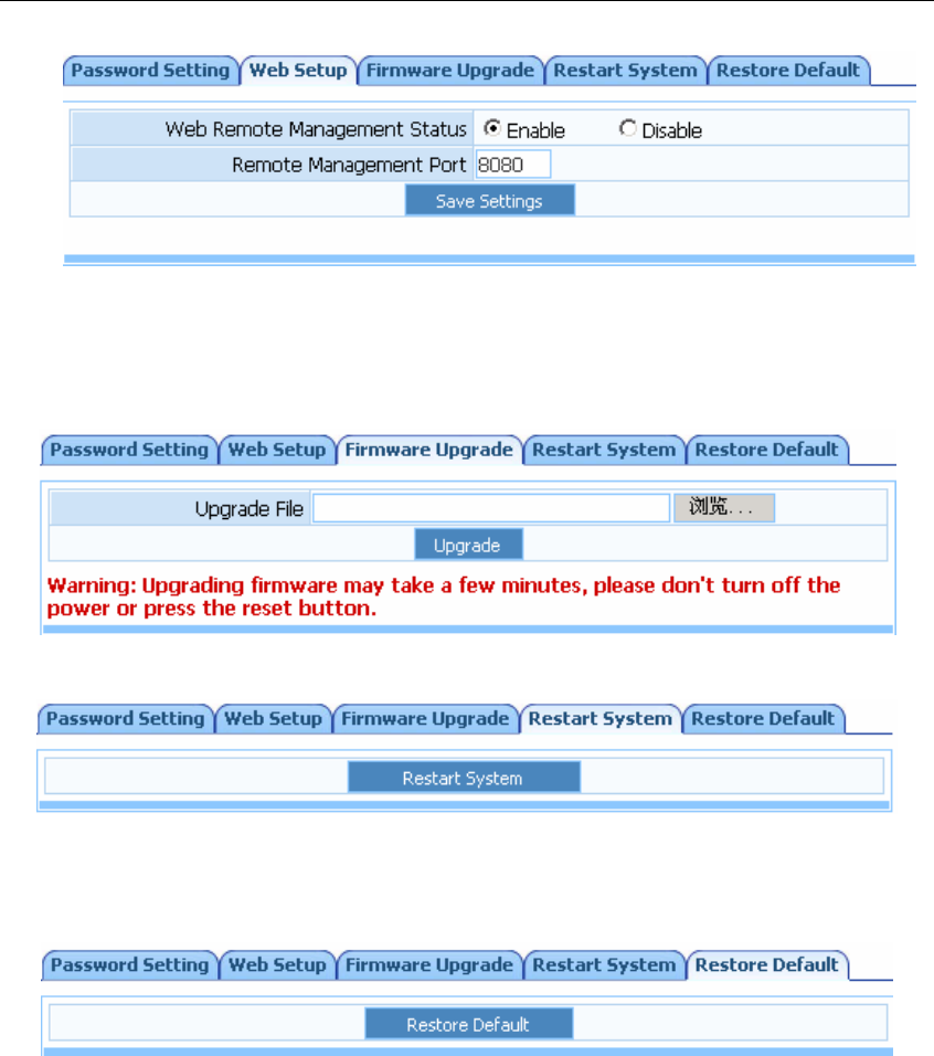 z Restore Default : Click "Restore Default" button, the Router will erase all of your settings