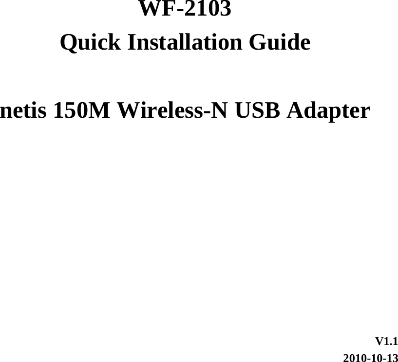 NETIS SYSTEMS WF2103R 150Mbps Wireless-N USB Adapter User Manual WF 2103