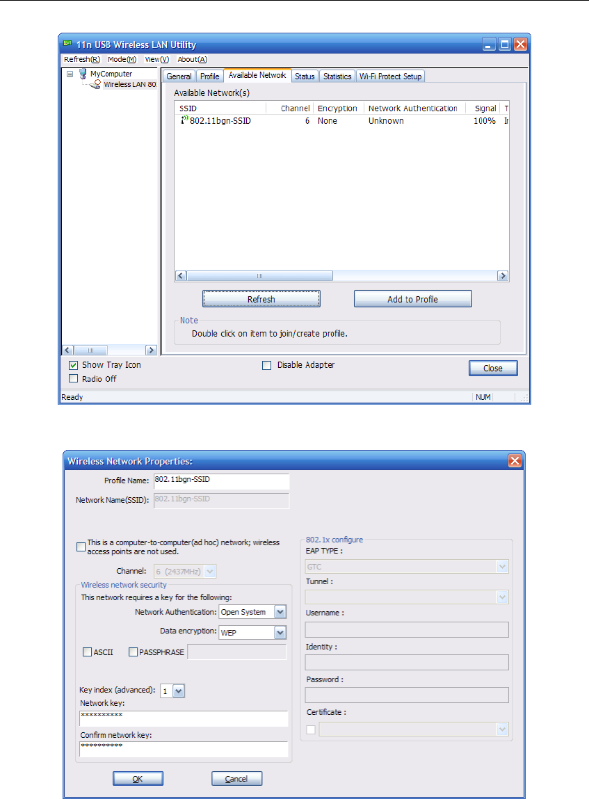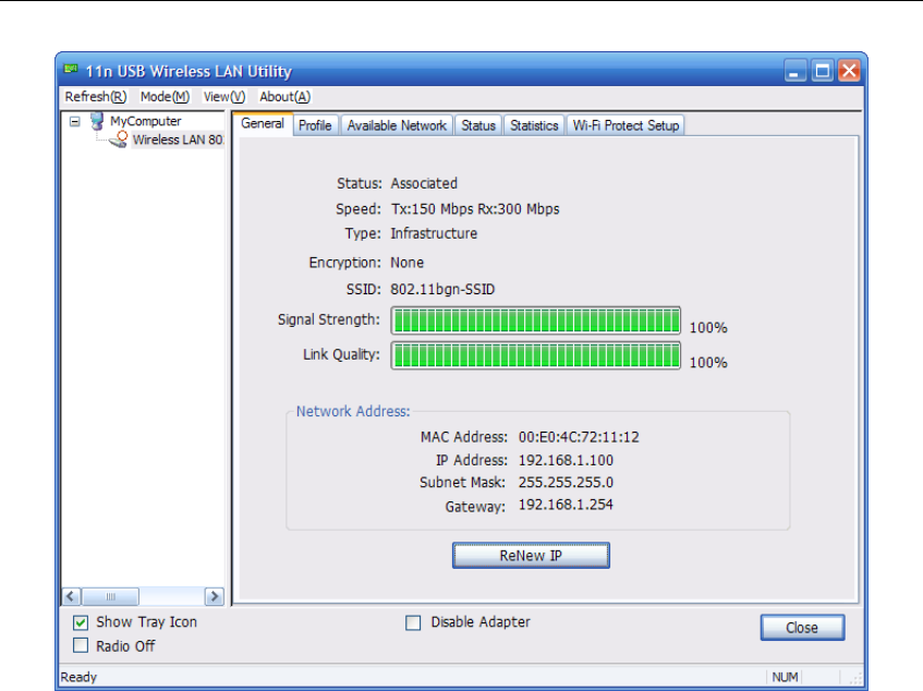 point or router. The adapter connects with 802.11n networks at up to 150Mbps, and is backwards