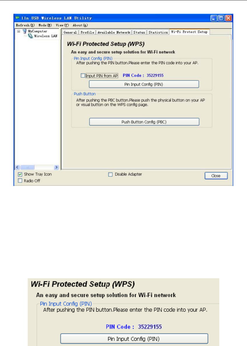 ¾ Click the ‘PIN Input Config (PIN)’ in the Wi-Fi protect setup of the adapter