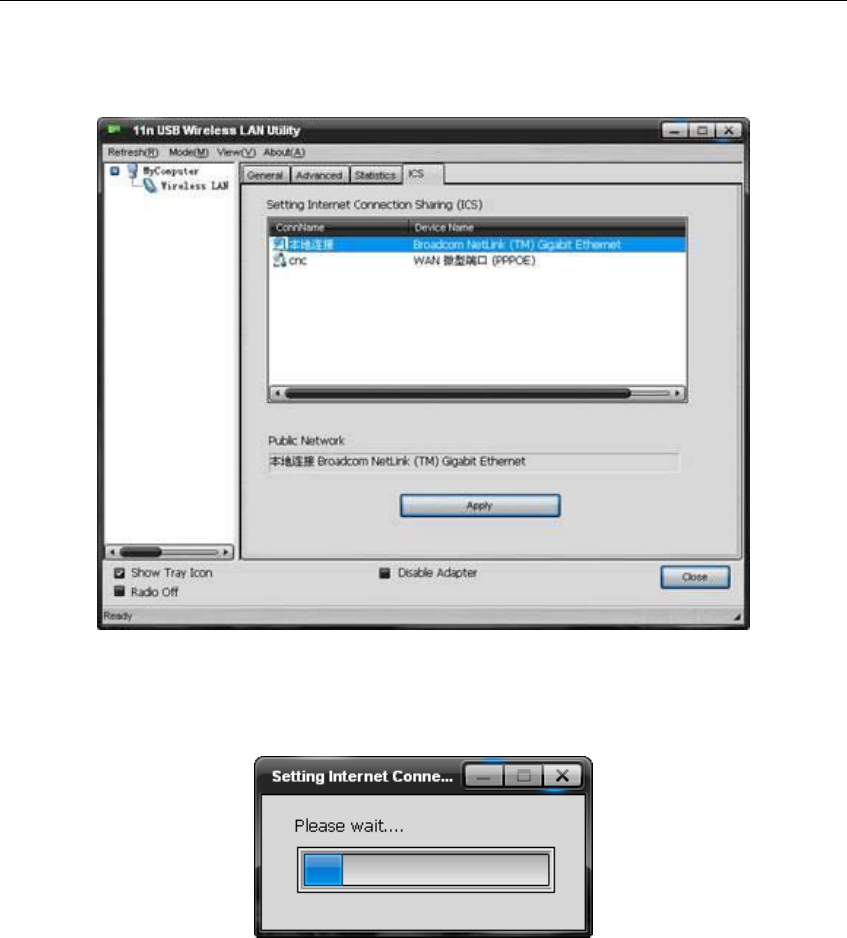 then click ‘apply’, the following picture appears. When you connect successfully, you can share
