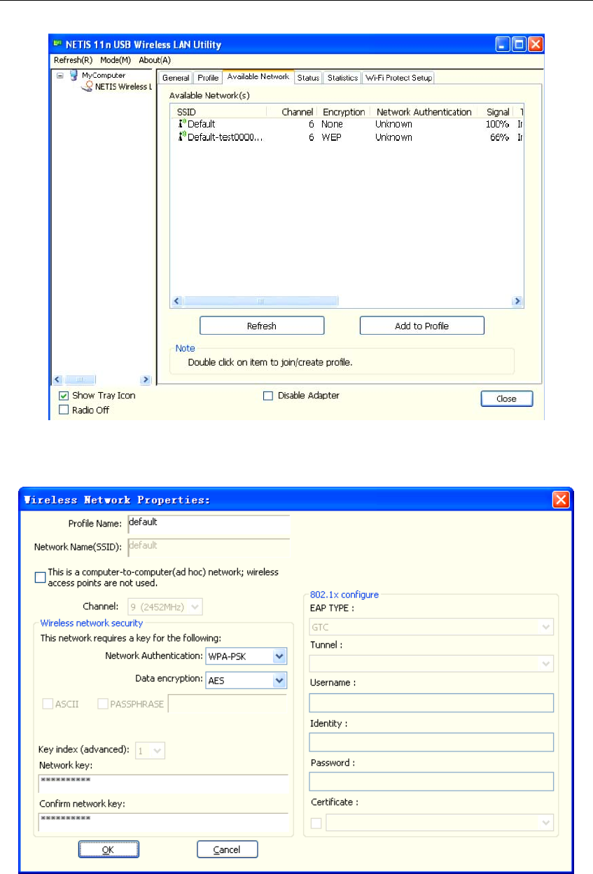 Start>Programs> netis 11n USB Wireless LAN Utility> netis 11n USB Wireless LAN Utility.