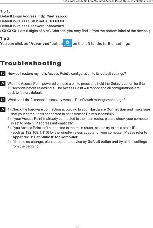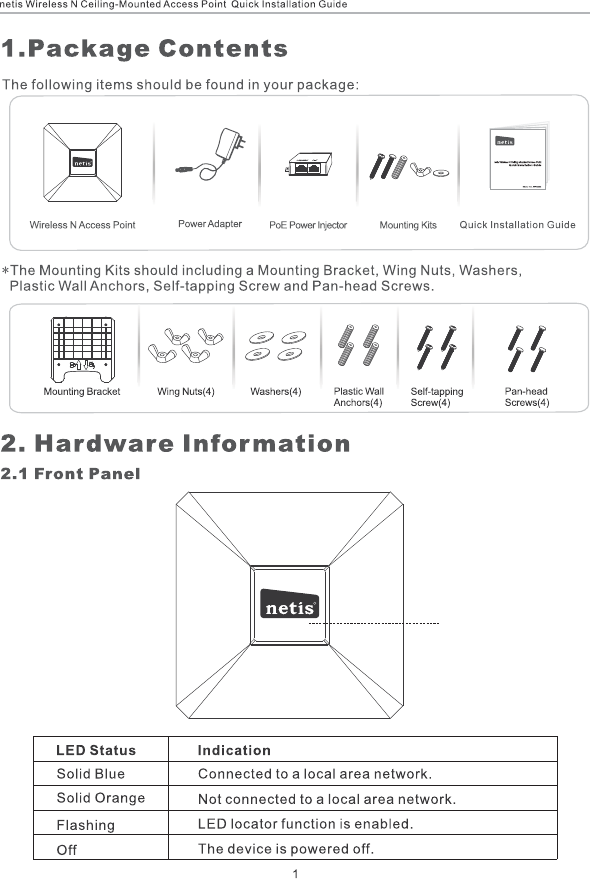 NETIS SYSTEMS WF2222R 300Mbps Wireless N Ceiling-Mounted Access Point User Manual 1