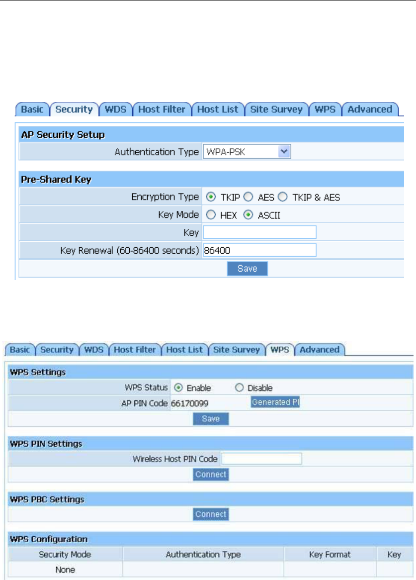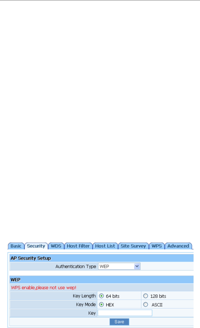 wireless security. Click ‘Wireless Management’- ‘AP Setup’ - ‘Security’. Five different