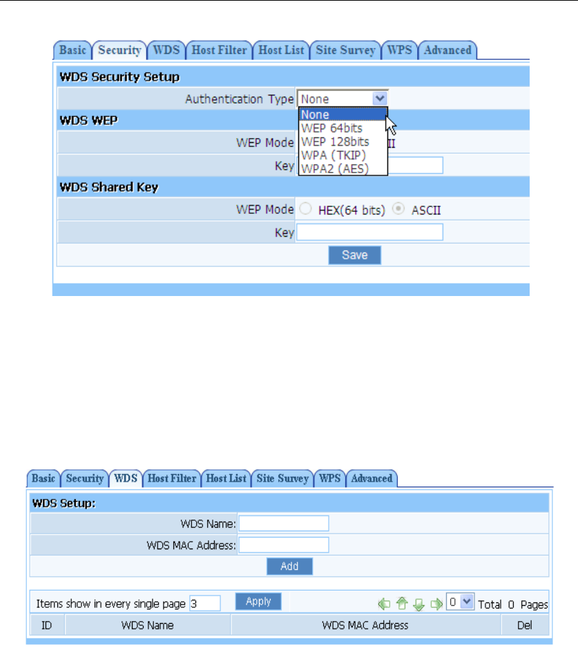 ¾ Click on ‘Wireless Management’- ‘AP Setup’ - ‘Security’ and select and the same WDS