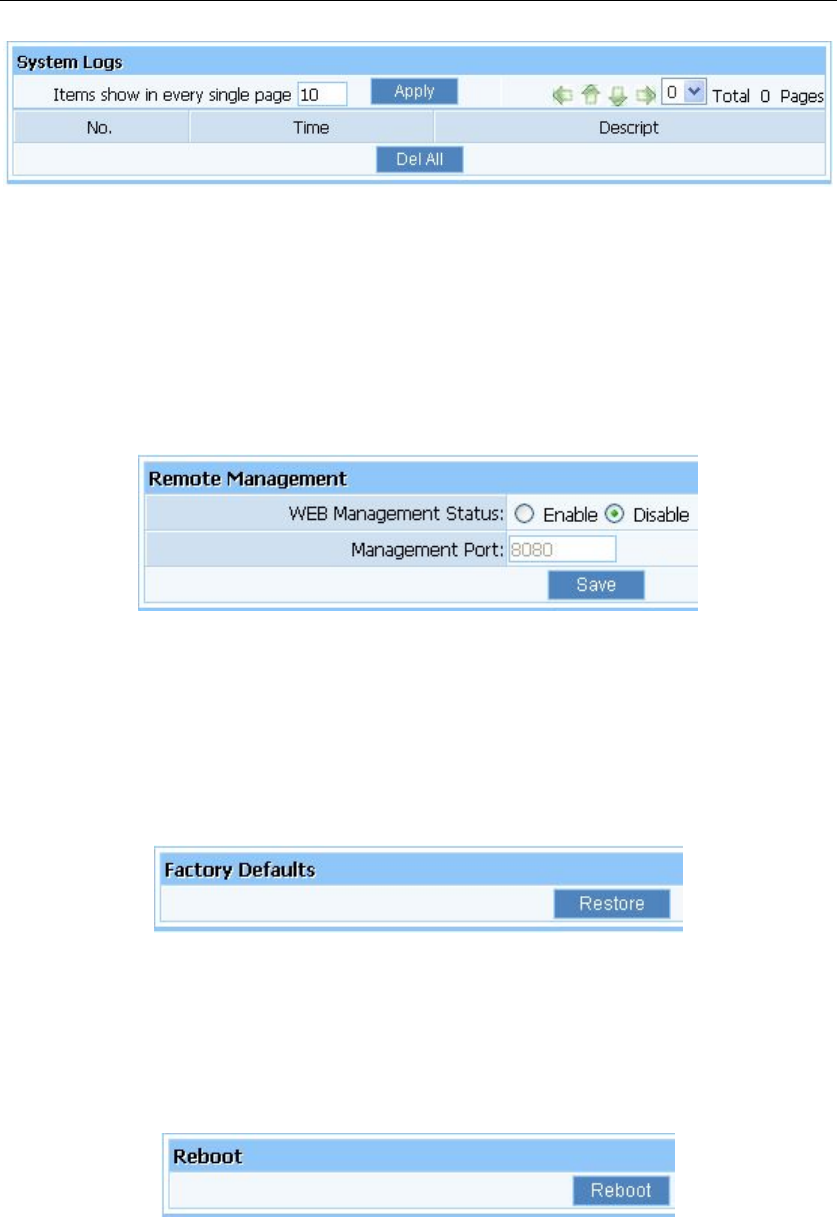 WEB Management Status: the default is disable. Router can be accessed on the remote site