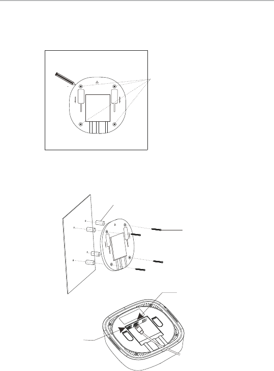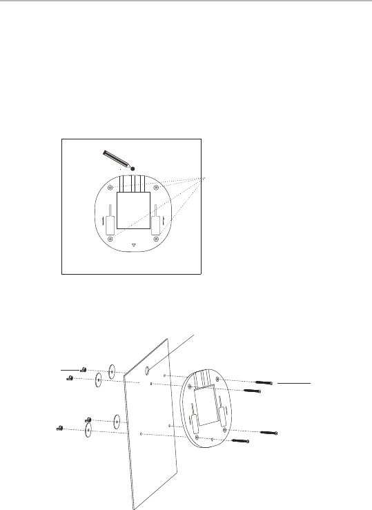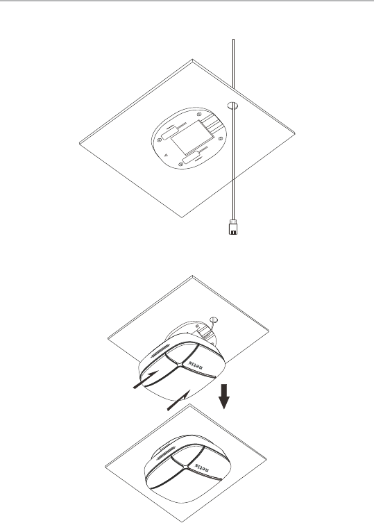 ceiling. Marking four holes of the bracket on the ceiling and one hole for Ethernet cable
