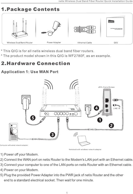 NETIS SYSTEMS WF2780FR AC1200 WIRELESS DUAL BAND GIGABIT FIBER ROUTER User Manual 1