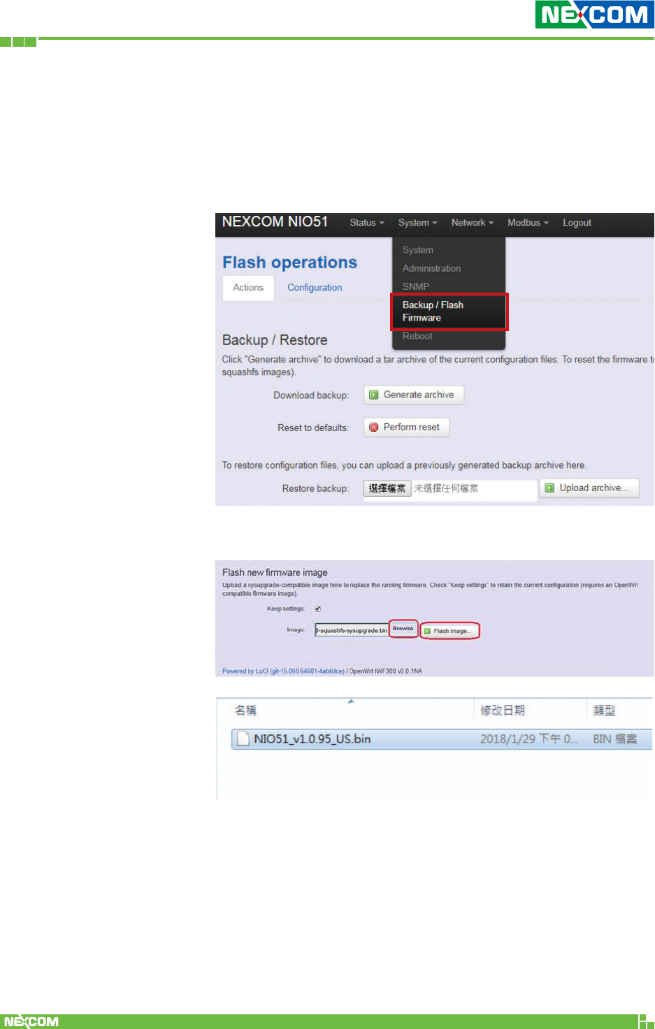 Step 1. In the “System” -> “Flash firmware” page, press the