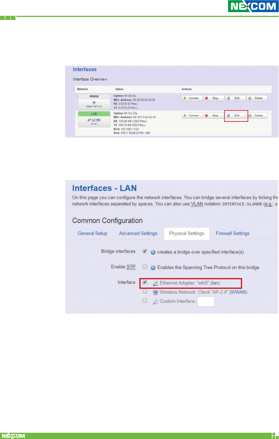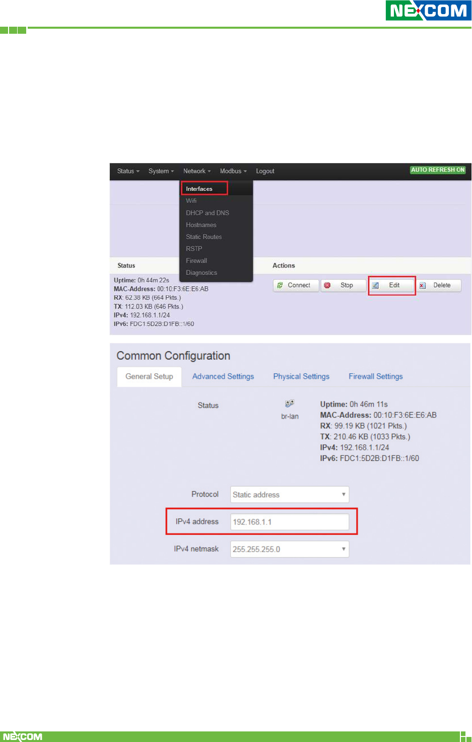 Step 1. Please select “Network” -> “Interface” and click LAN Edit.