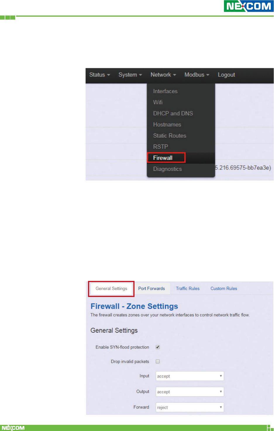 Step 1. Please select “Network” -> “Firewall” and select “accept” to