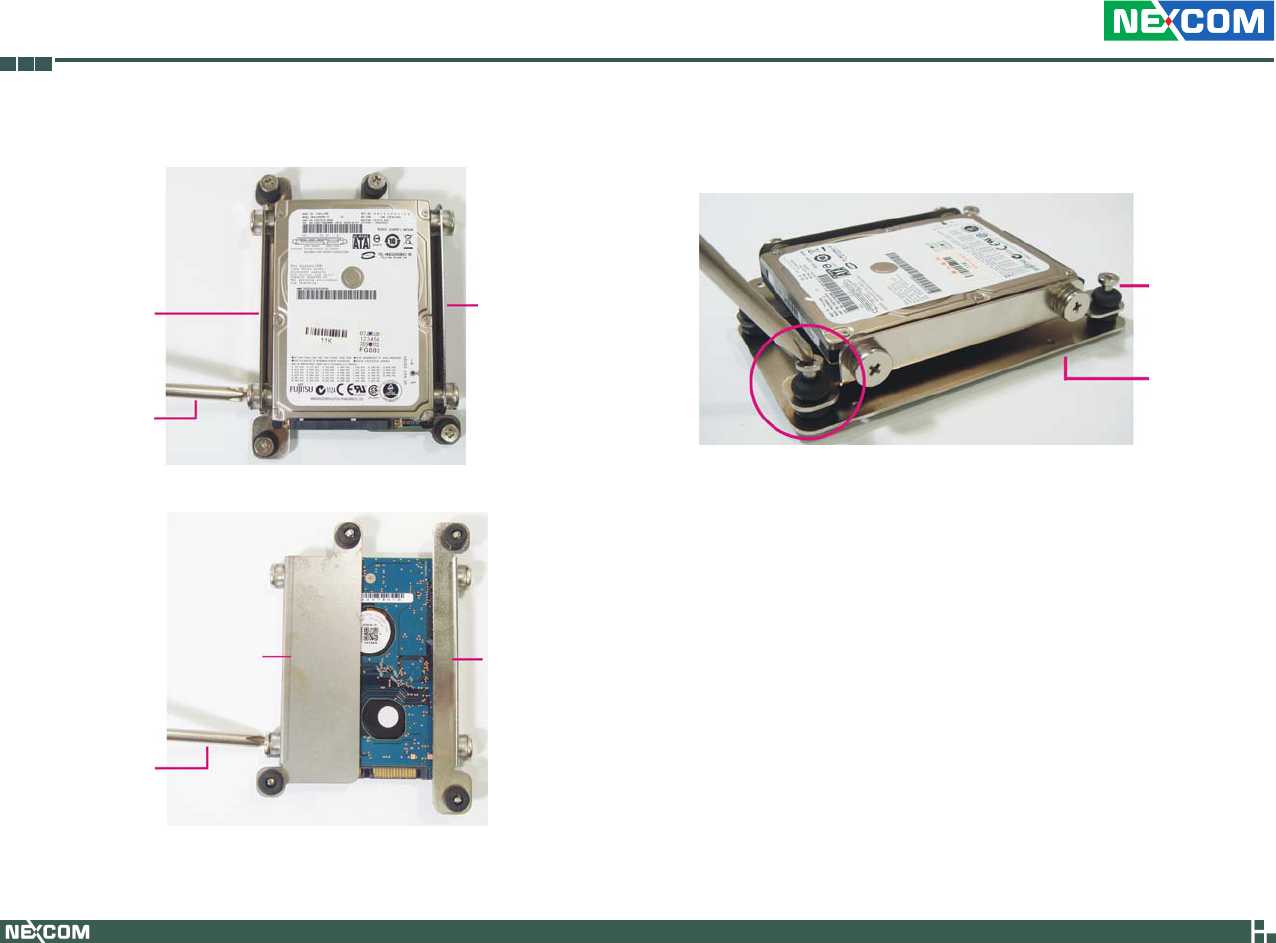 2. Position the HDD brackets on each side of the SATA drive. Align the