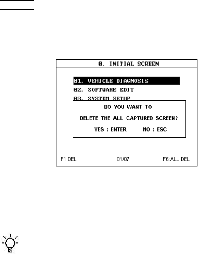 ALL DEL  This mode can delete the all captured screens. Press the