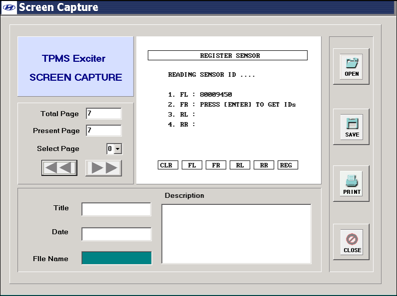 TPMS EXCITER screen capture function can store 7-paged screen inside