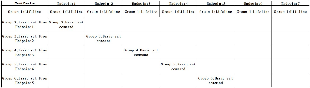 ZW1505 supports 6 association groups. A maximum of 5 node ID’s (nonmulti-channel devices) can be assigned to these association groups.