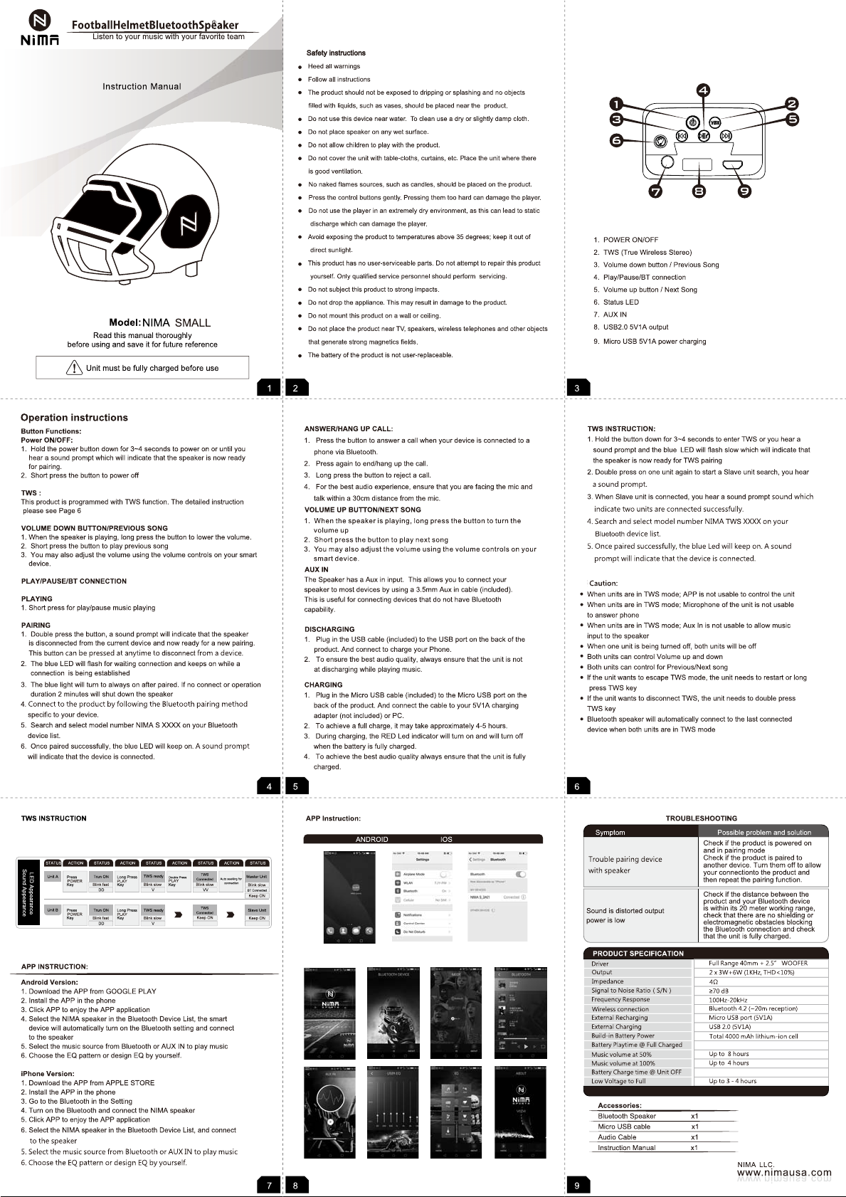 NIMA NIMAS Football Helmet Bluetooth Speaker User Manual