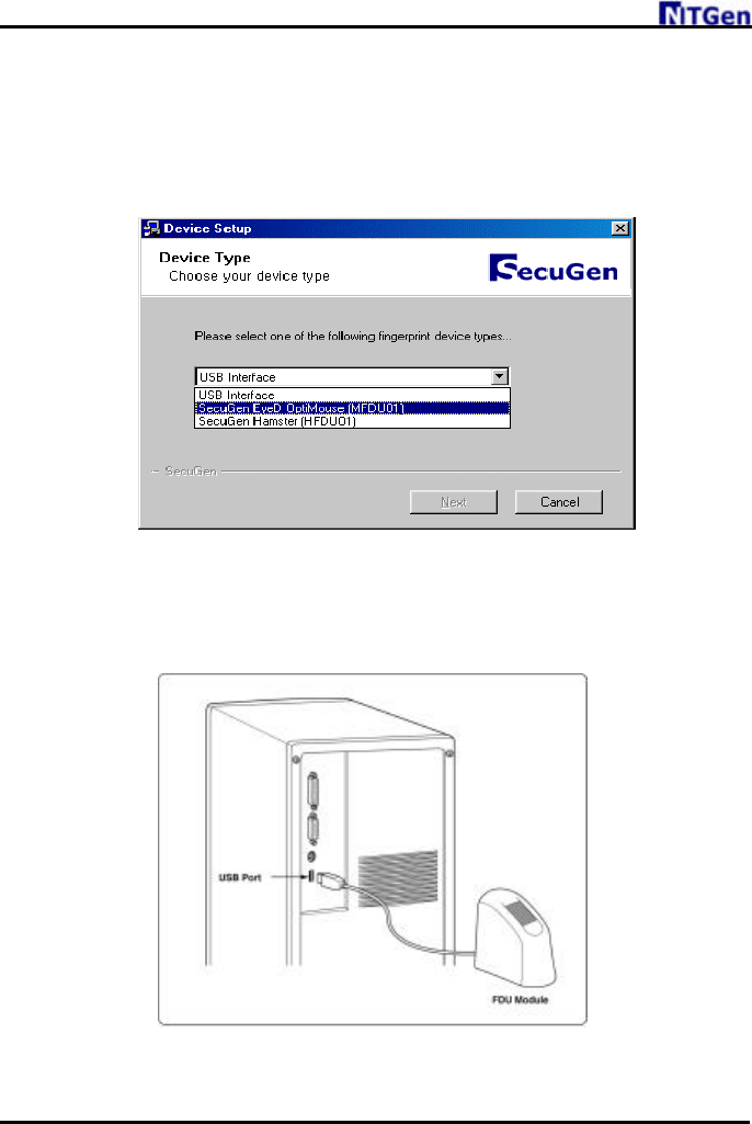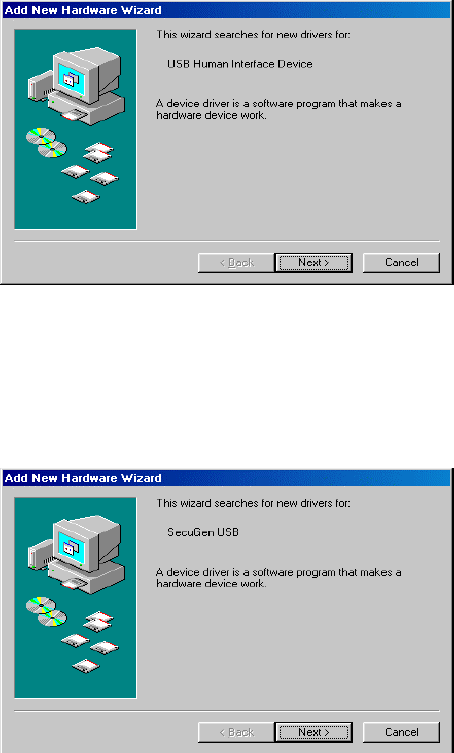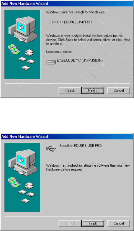 8)When “SecuGen USB” wizard dialog appears, click <Next>.