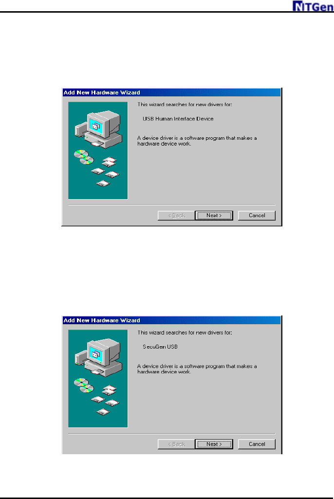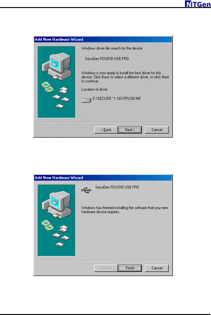 8)When “SecuGen USB” wizard dialog appears, click <Next>.