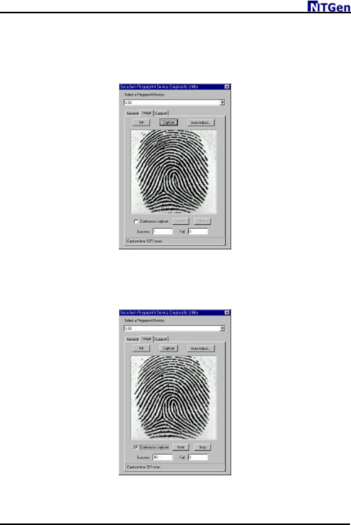 3)Click <Capture> button, then the captured fingerprint image appears in the