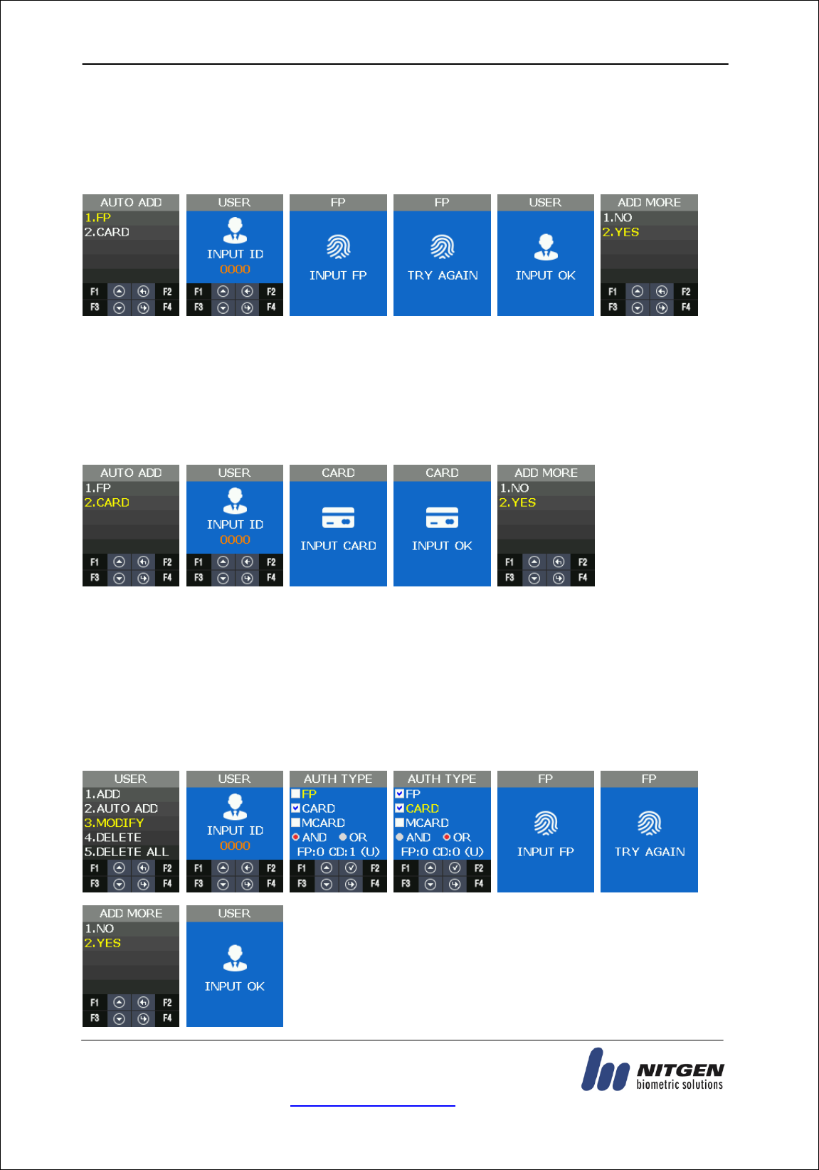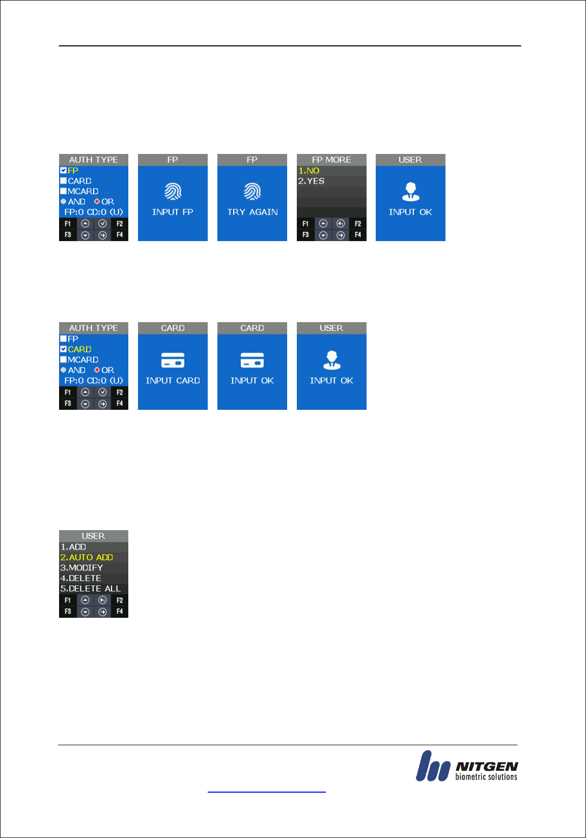 - It refers FP(Fingerprint)Authentication, RF(Card)Authentication and a various types of