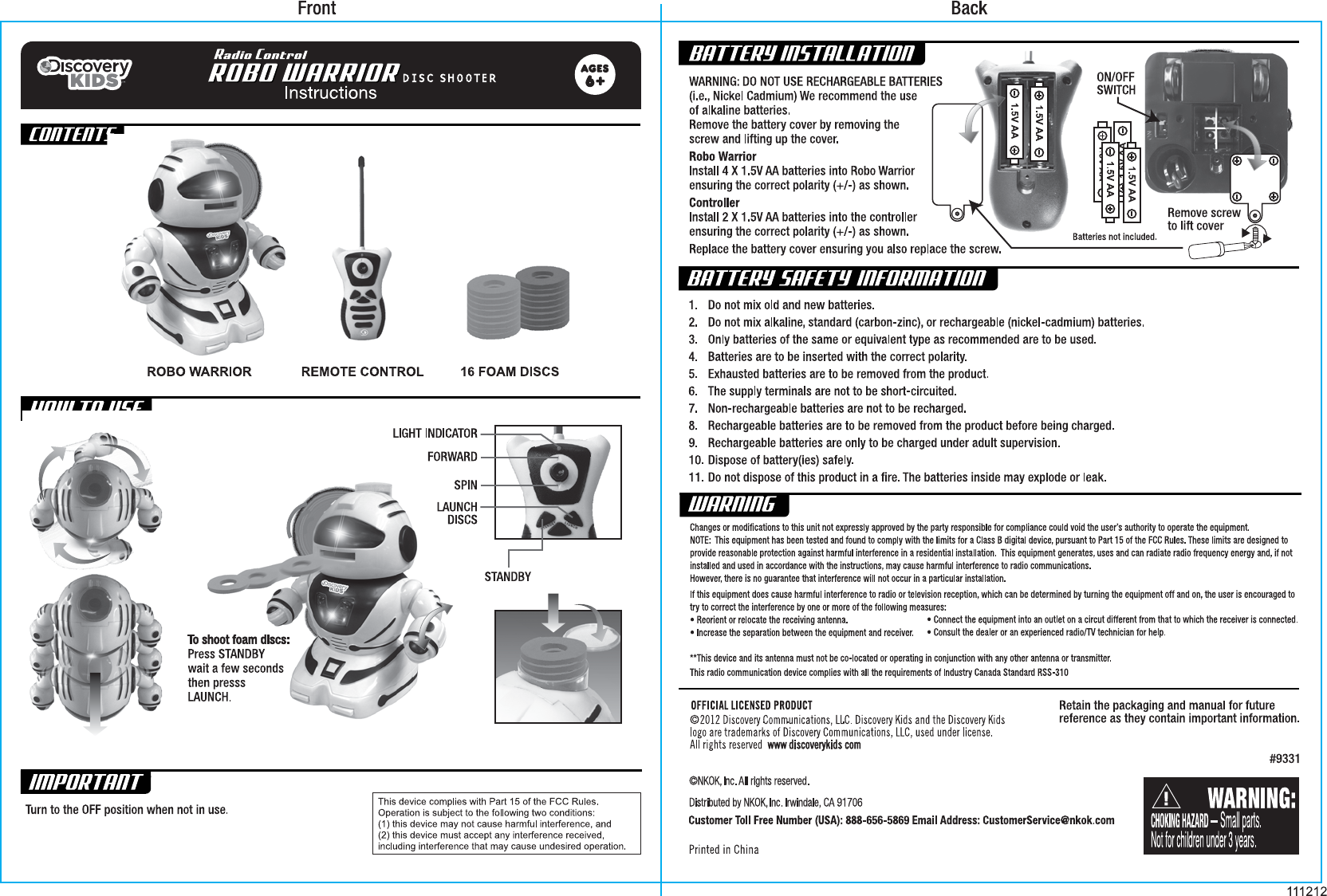 NKOK JQ071227TX Remote Controller For Toy User Manual 9331 IM 11 12 12