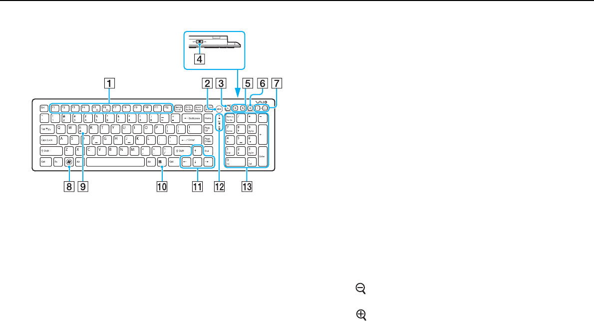 Slide the switch to turn the wireless keyboard on and off.Zoom