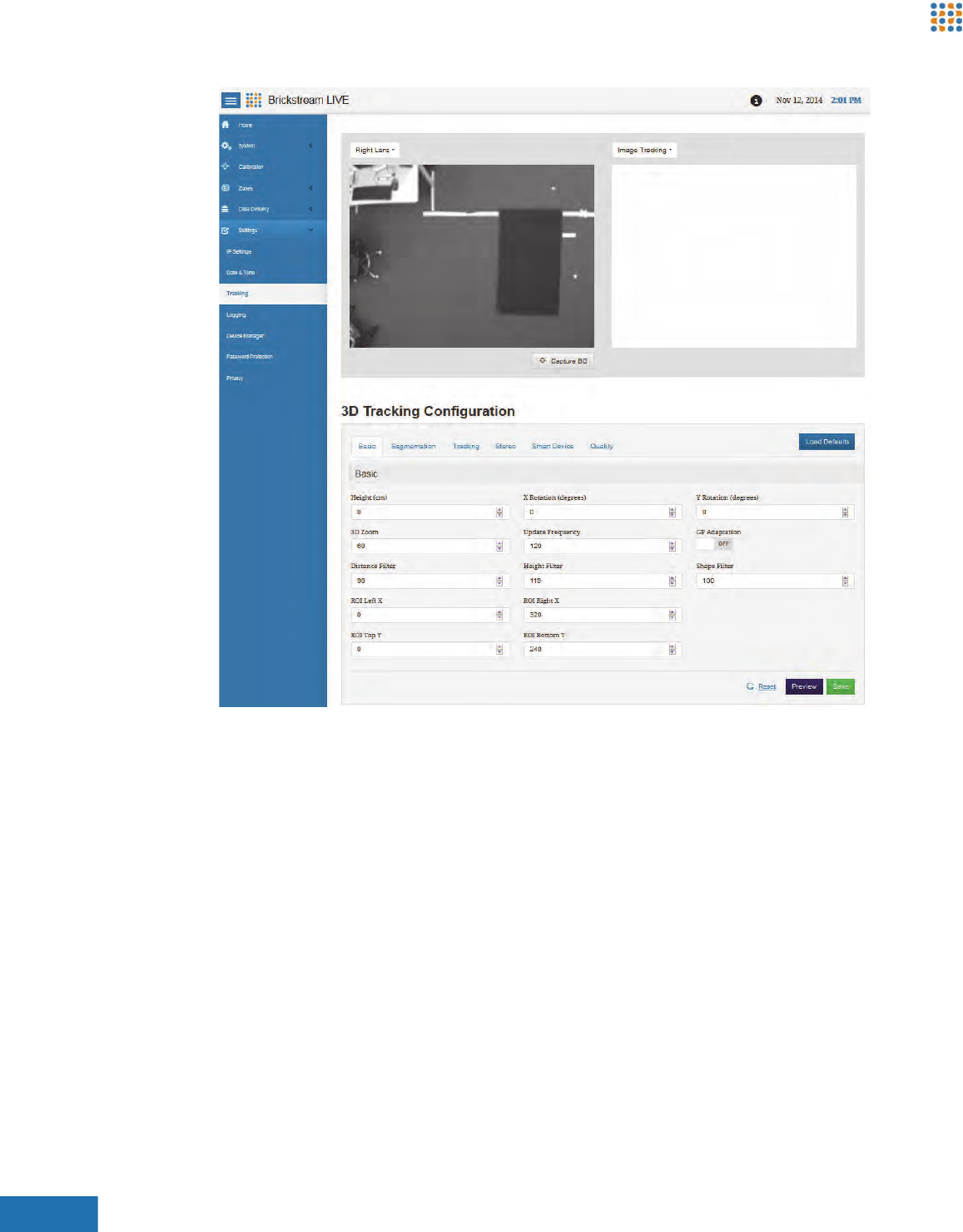 Go to the 3D Tracking Configuration page of the Smart Device. The initial video displays, and