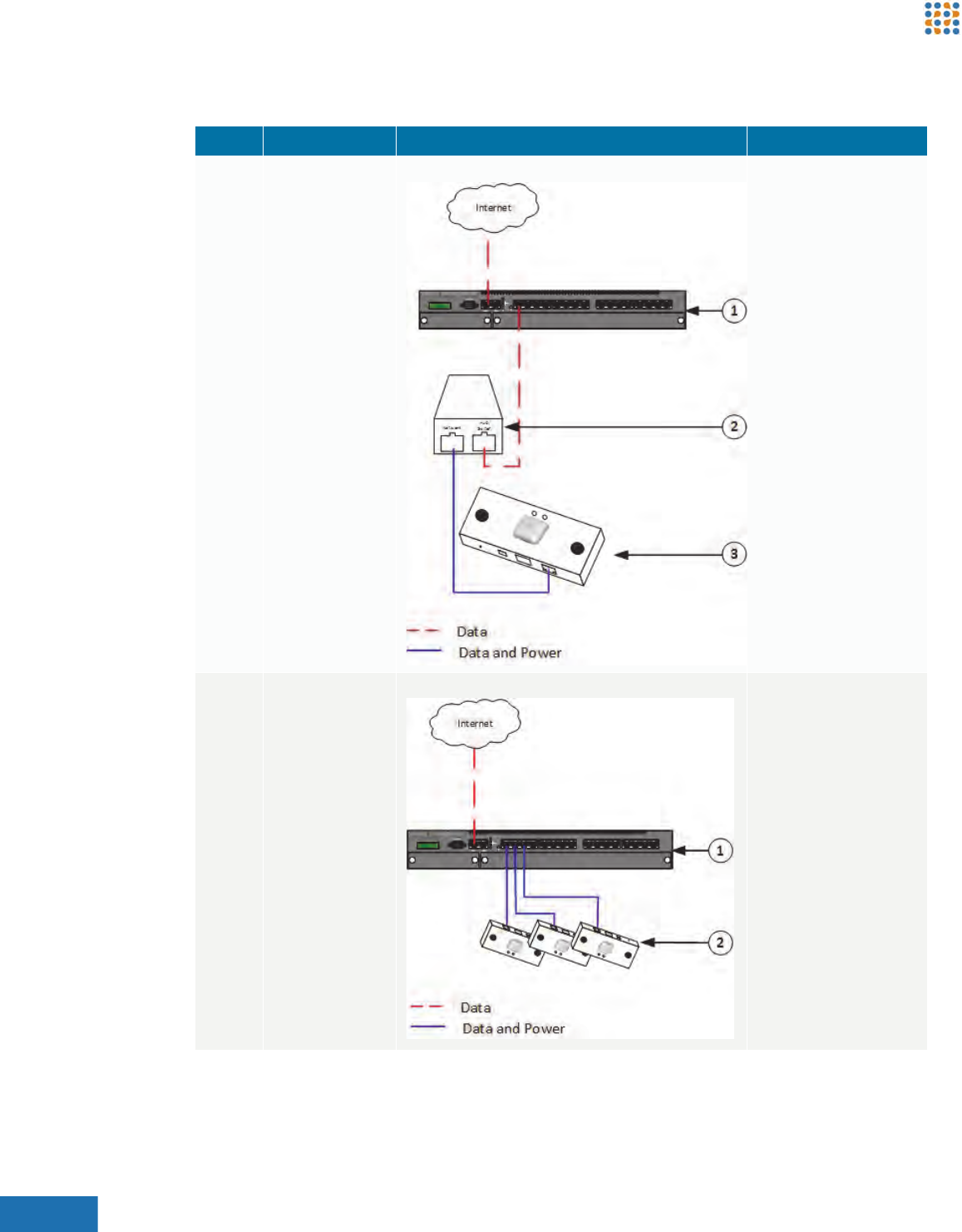 The following table describes how to connect the Brickstream® 3D+ Smart Device to the network/