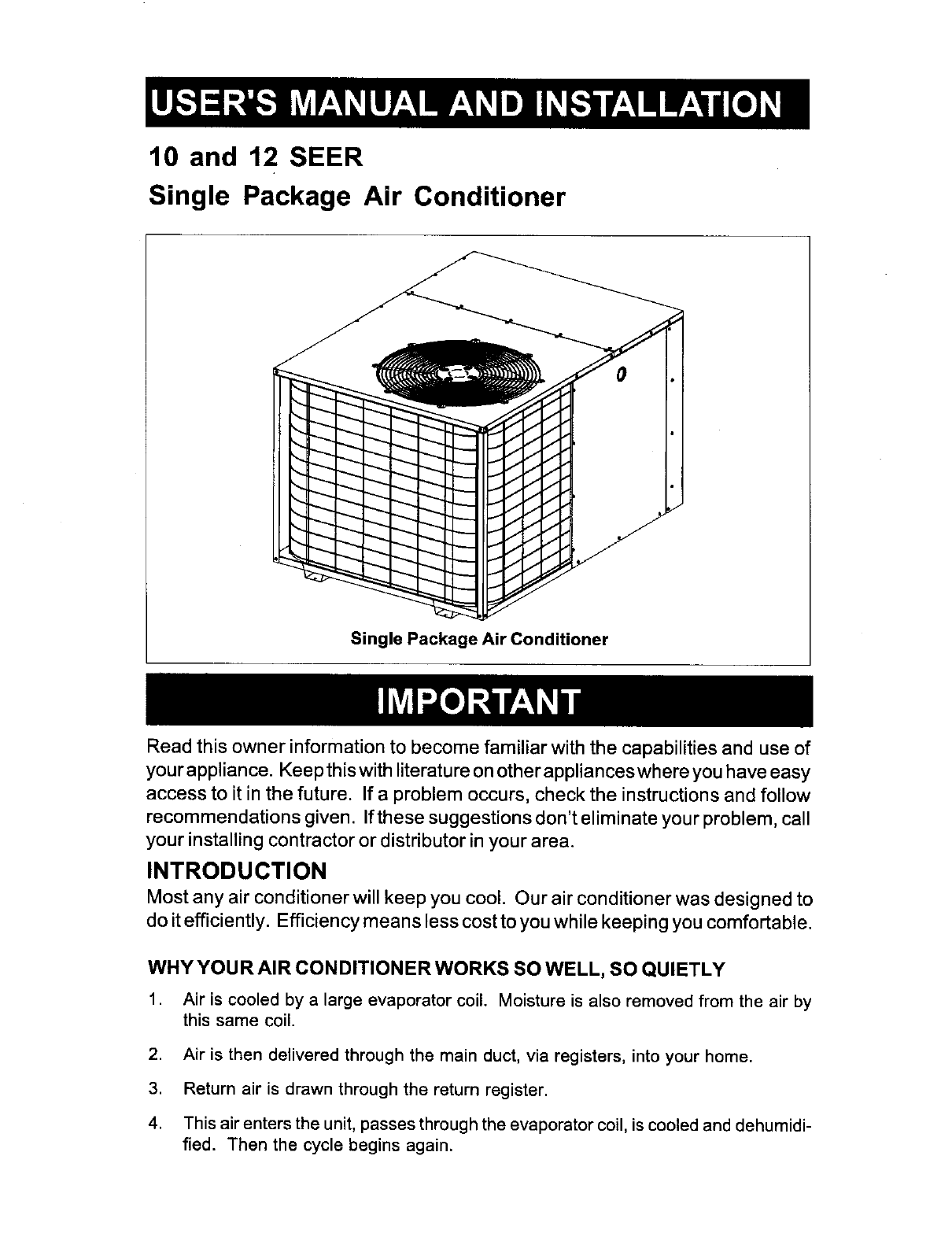User Manual: NORDYNE NORDYNE Package Units(both units combined) Manual NORDYNE Package Units(both units combined) Owner's Manual, NORDYNE Package Units(both units combined) installation guides