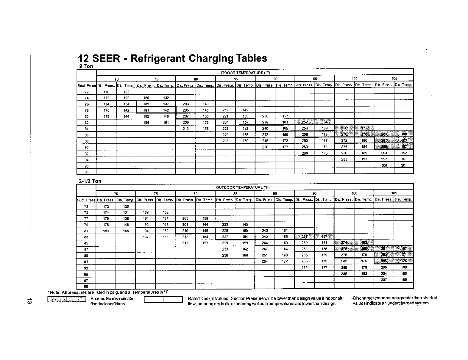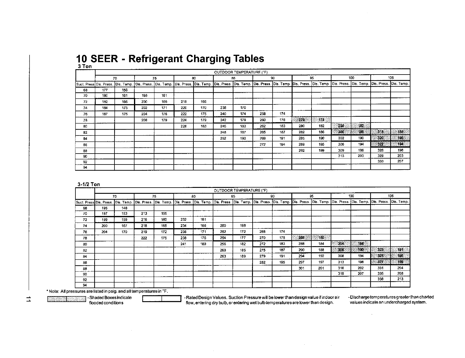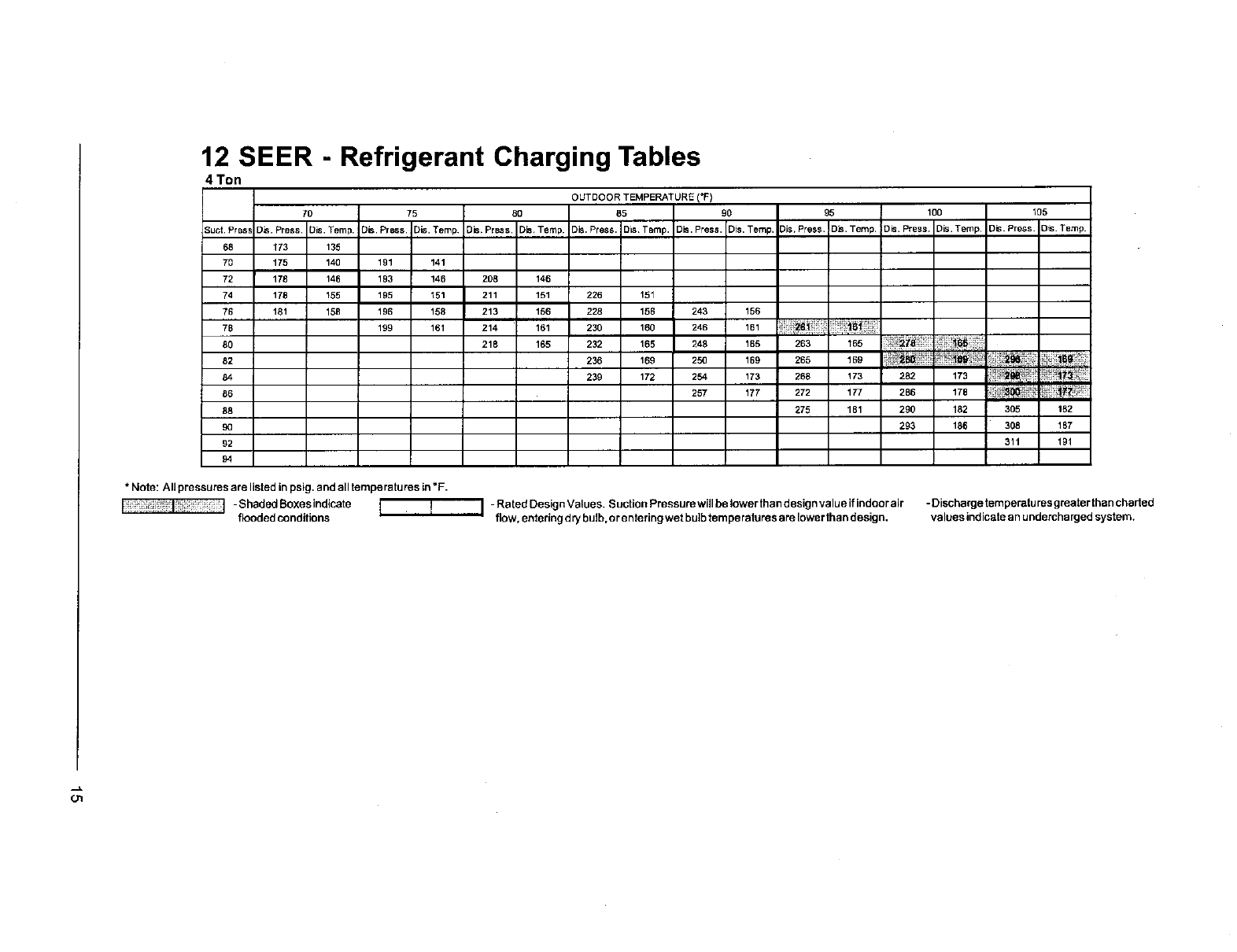 -ShadedBoxesindicate I I I -RatedDesignValues. SuctionPressurewillbelowerthandesignvalueifirldoorair -Dischargetemperaturesgreaterthanchaded