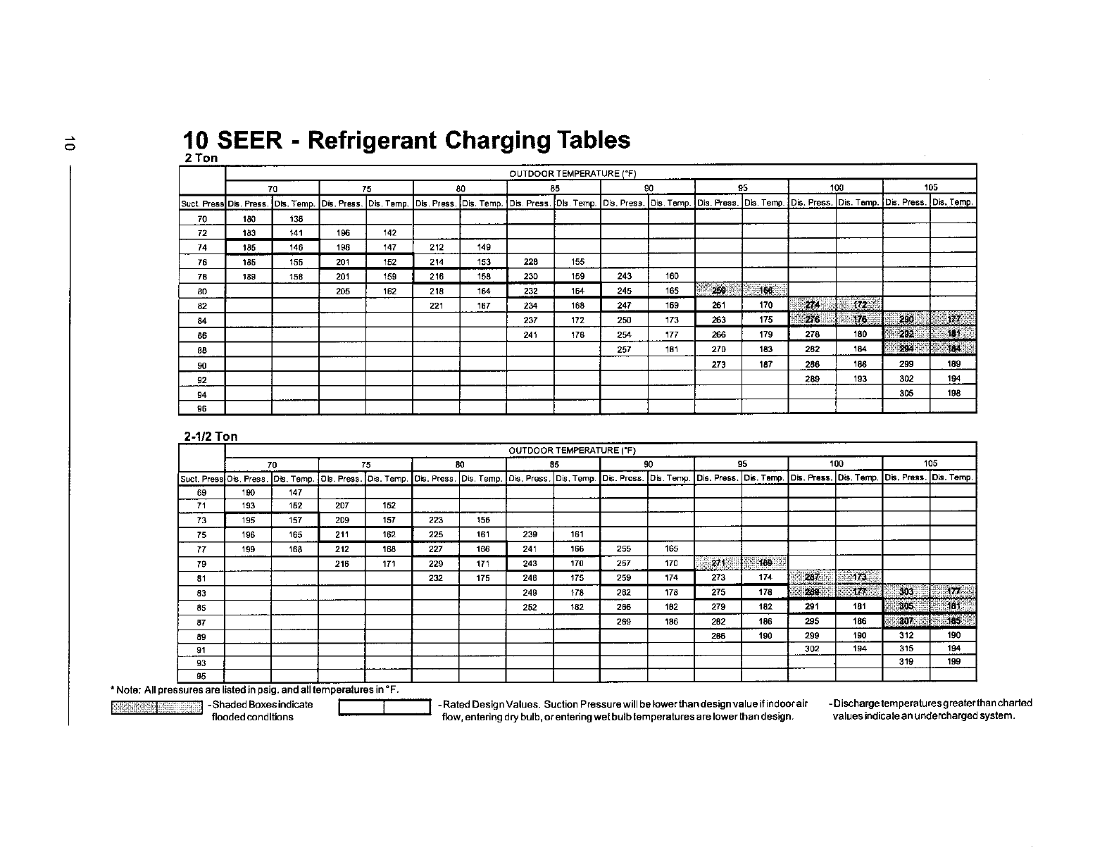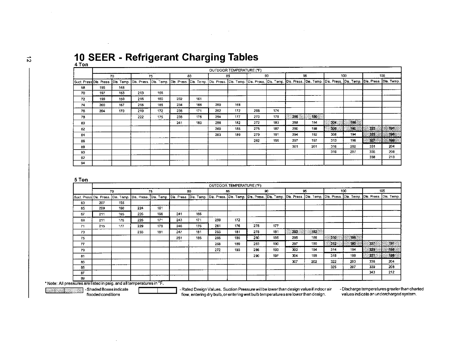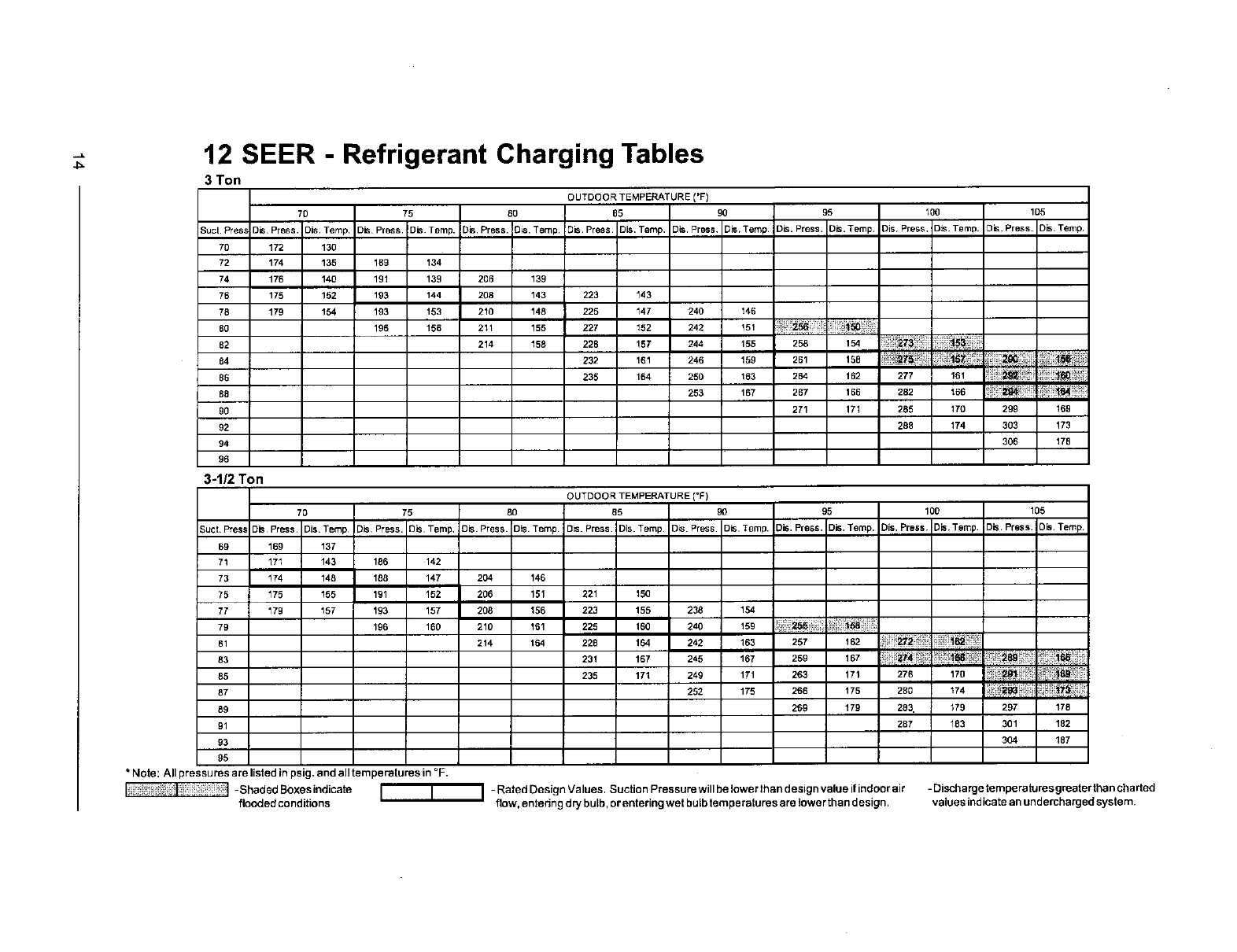 -ShadedBoxesindicate I I I -RatedDesignValues. SuctionPressurewillbelowerthandesignvalueifirldoorair -Dischargetemperaturesgreaterthanchaded